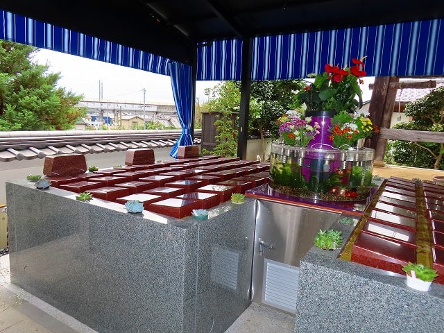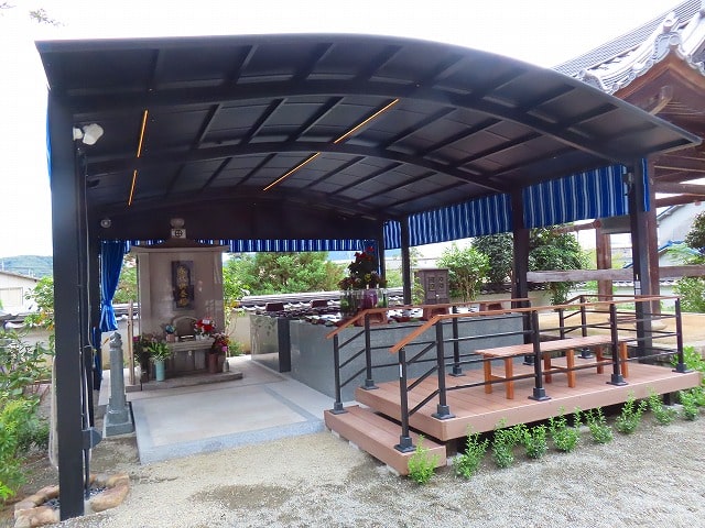 田辺寺内に福山市内初のガーデン葬が誕生いたしました。墓参がしやすい全天候型屋根付きのガーデン葬は、雨天時も安心で、夏季には上からミストが降り注ぎます。足元も整備されていて、いつでも快適にお参りいただけます。
