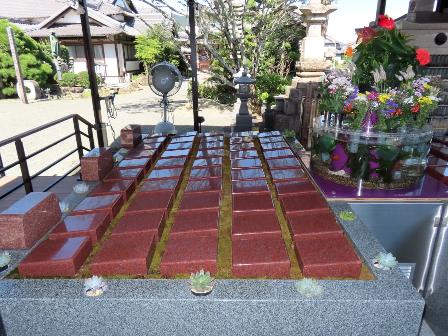 田辺寺内に福山市内初のガーデン葬が誕生いたしました。墓参がしやすい全天候型屋根付きのガーデン葬は、雨天時も安心で、夏季には上からミストが降り注ぎます。足元も整備されていて、いつでも快適にお参りいただけます。