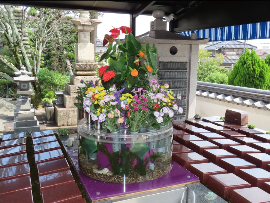供花システムには金魚が泳ぎ、訪れる方の心を和ませます。お参りの時間を、より穏やかでやさしいひとときにしてくれます。